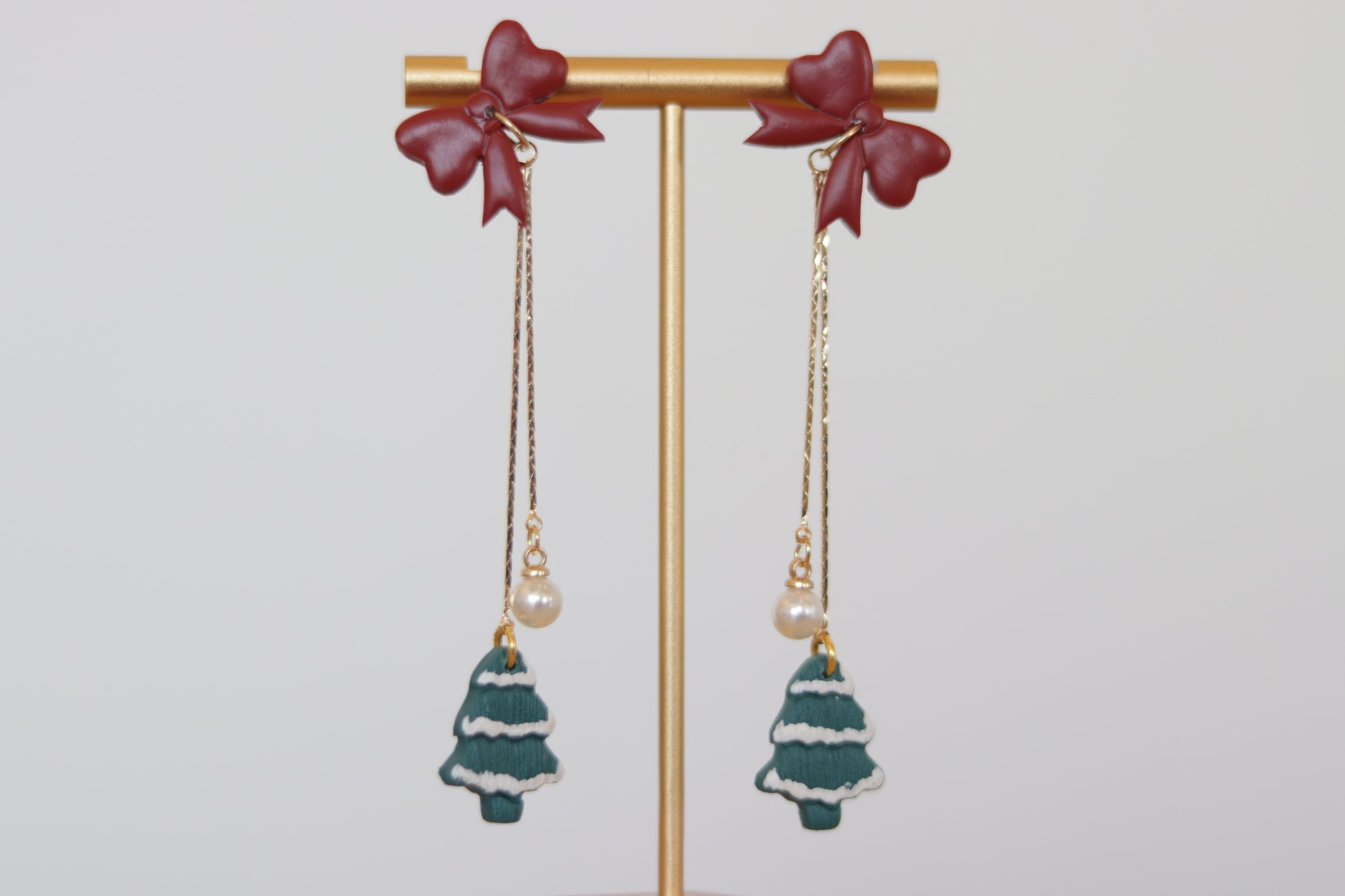 Inspired by snowy Christmas firs, festive red bows, and the soft chime of winter bells, these earrings add a graceful holiday shimmer that makes your look feel charming, feminine, and beautifully festive.